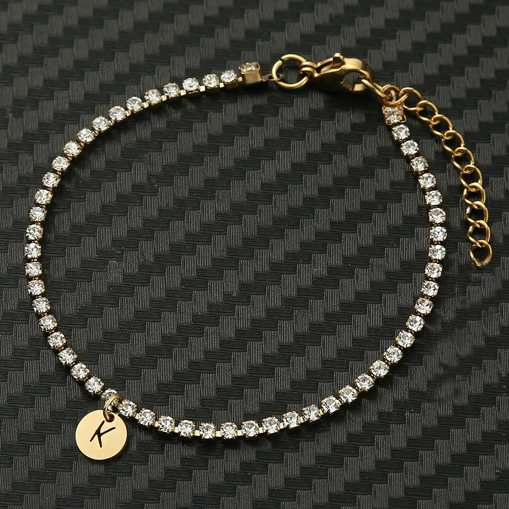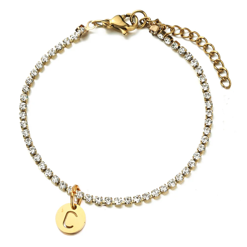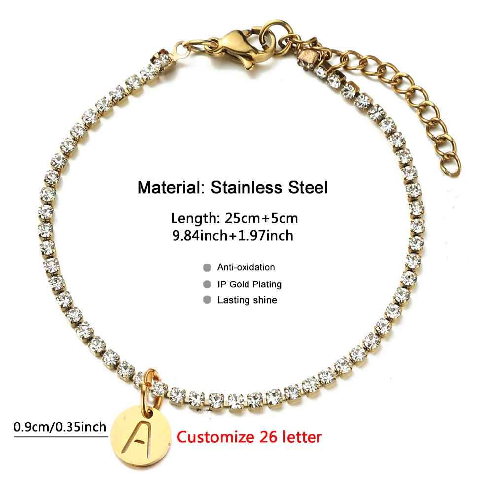 Браслет на ногу женский из нержавеющей стали, анклет с кристаллами и диском, с инициальными буквами, цепочка для ног, Пляжная бижутерия, анклет с алфавитом, аксессуары