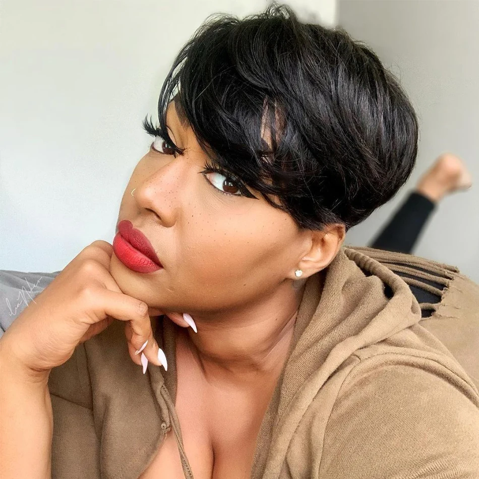 Парик Из прямых волос с коротким вырезом фея, бразильские парики из человеческих волос без клея для черных женщин, парик ручной работы, дешевый парик