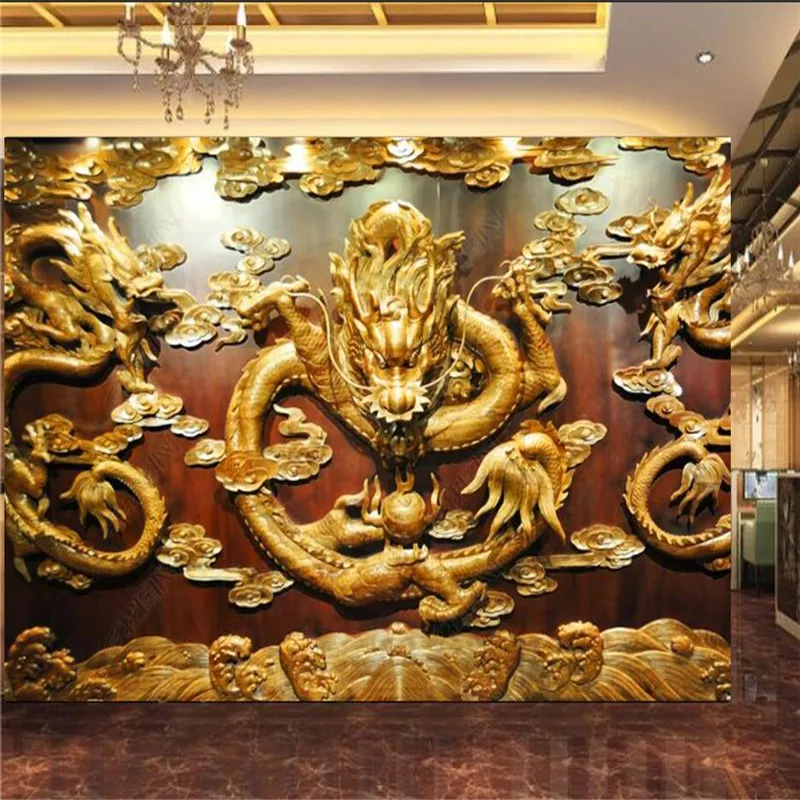 Пользовательские 3D трехмерный рельеф дракон фото обои ресторанный в китайском стиле отель промышленный Декор настенная бумага 3D