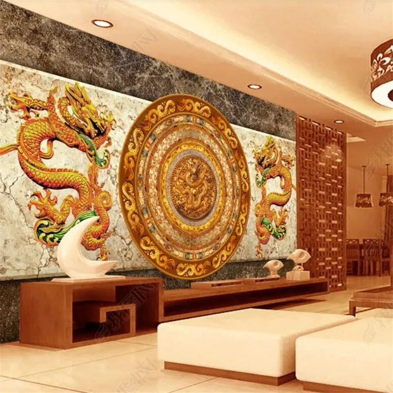 Фотообои 3D в китайском стиле, с драконом, Gloden, для гостиницы, р...