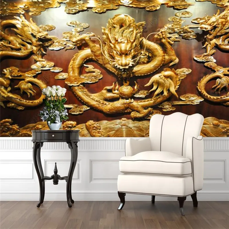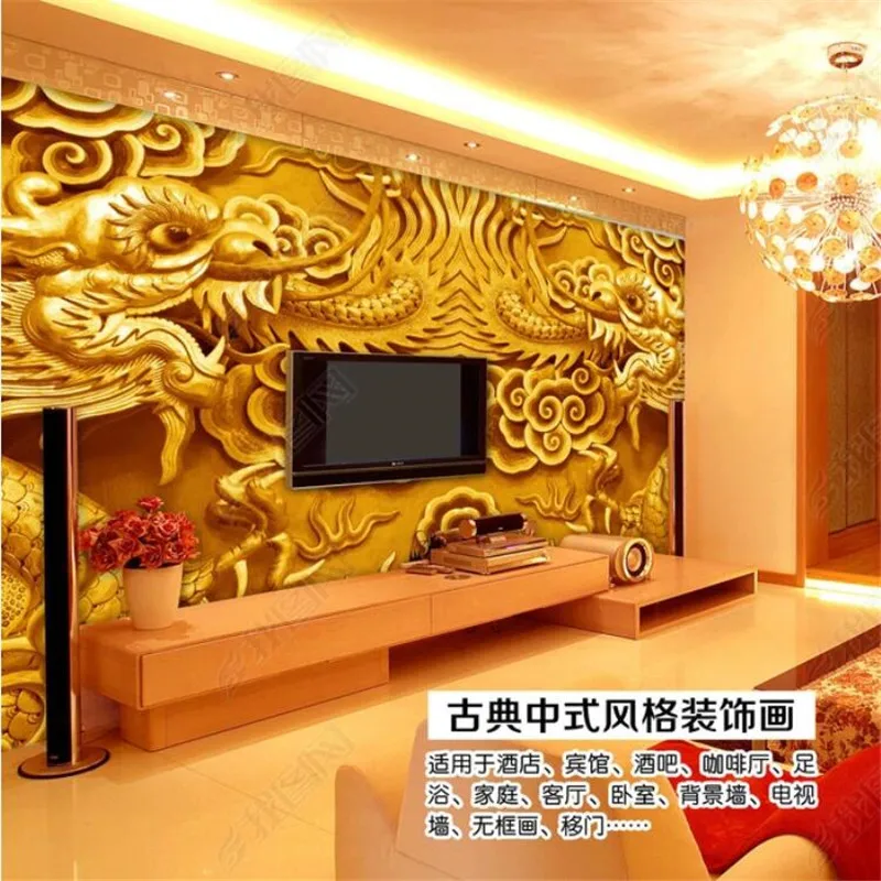 3D стереоскопический рельефный золотой китайский дракон фотообои для отеля ресторана гостиной обои домашний декор