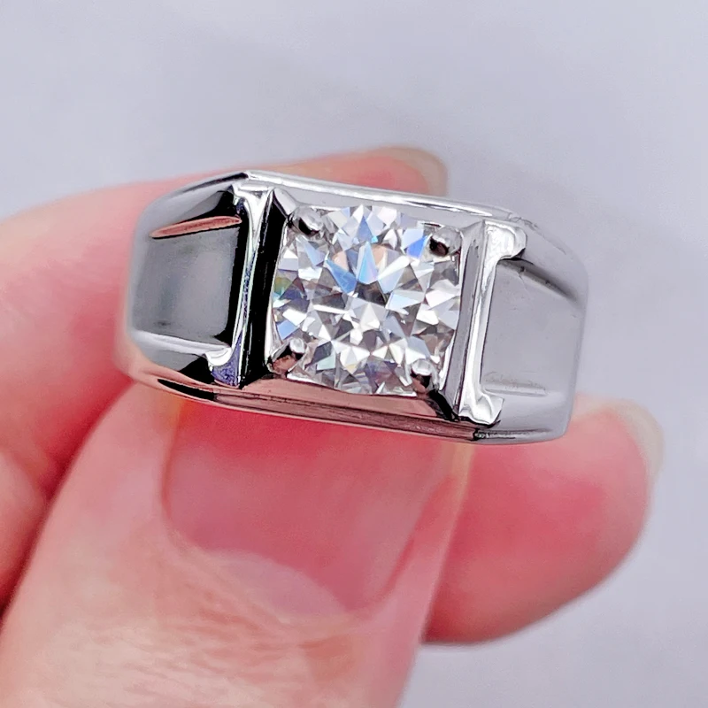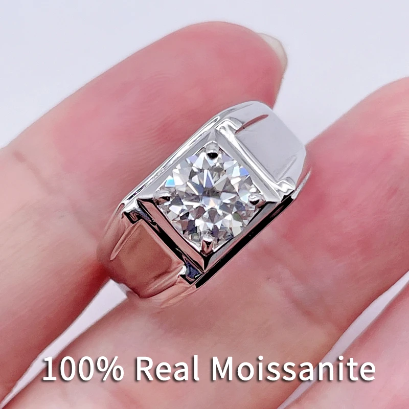 1-3CT кольцо из настоящего муассанита для мужчин, классическое простое серебро 925 пробы, цвет D-F, регулируемые обручальные кольца с изменяемым размером, ювелирные украшения
