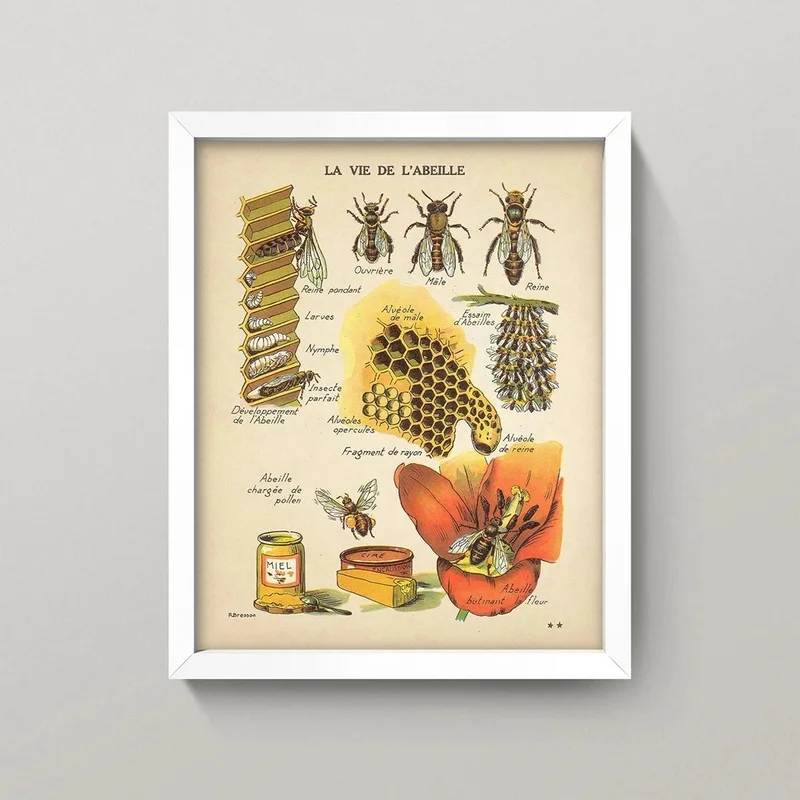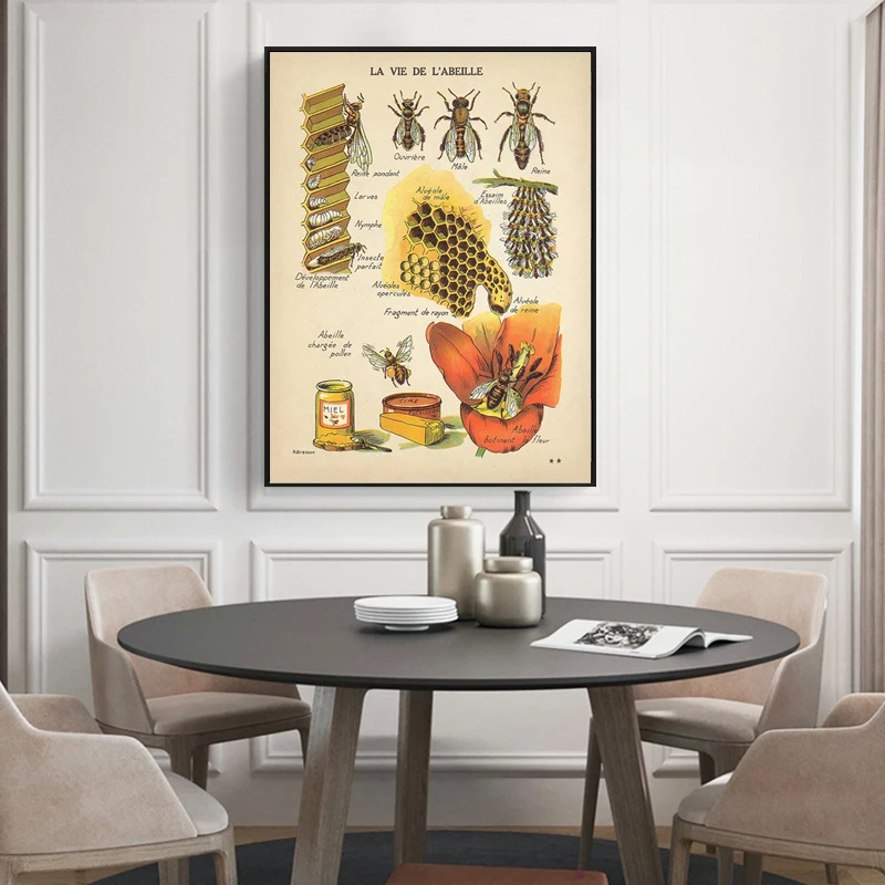 Настенный плакат с пчелами под старину, винтажный постер с натураль...
