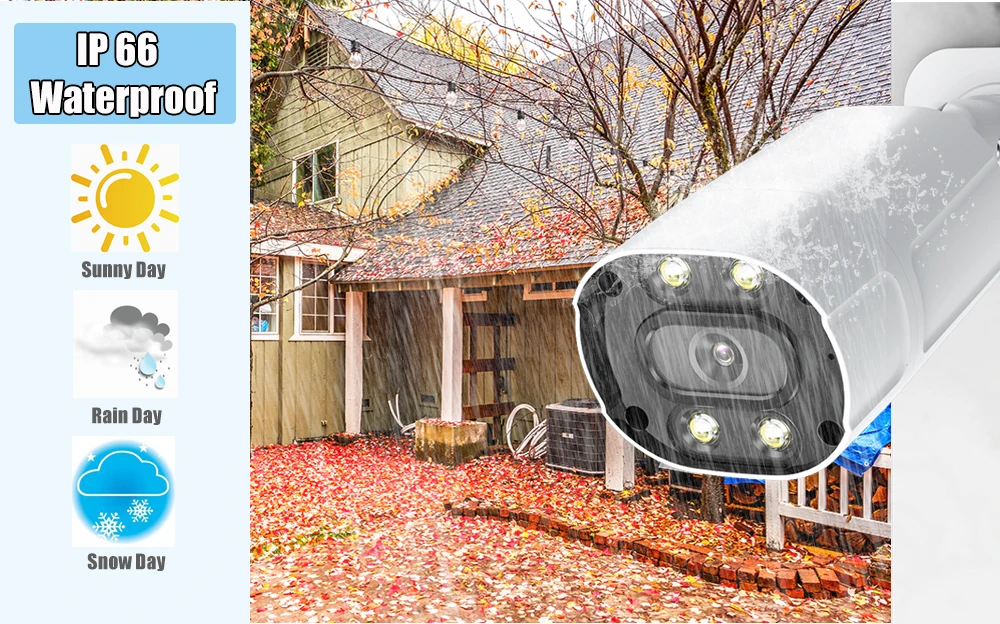 Наша камера имеет сверхпрочный металлический корпус, профессиональный IP66, устойчивый к атмосферным воздействиям, обеспечивая стабильную производительность как внутри, так и снаружи.