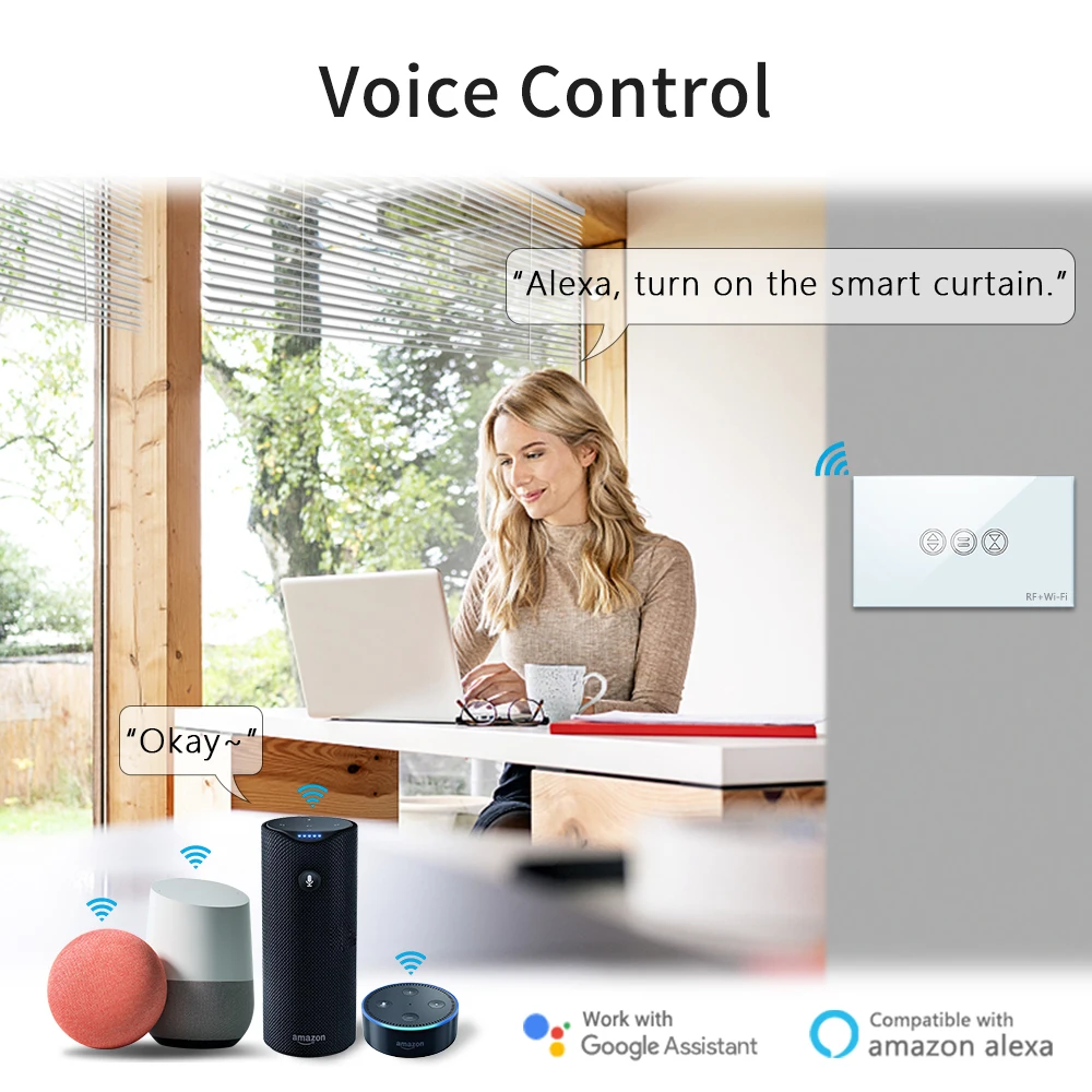 -Беспроводной умный слепой переключатель совместим с Amazon Alexa, Google Home.-С голосовым управлением, чтобы включить и выключить шторы.