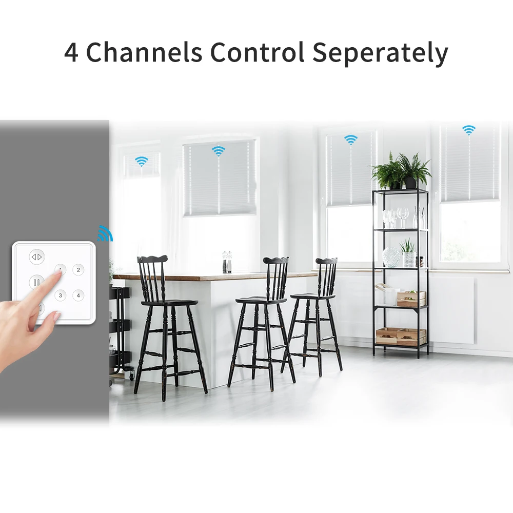 Пульт дистанционного управления 4 шторы отдельно, без помехНесколько способов контролировать ваш занавес-RF 4 канальный Дистанционно управляемый-Пульт дистанционного управления и таймер-Голосовое управление с Google Home, Alexa