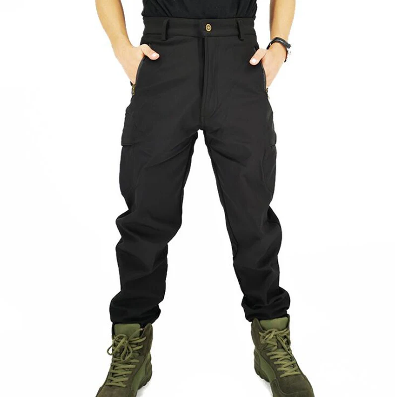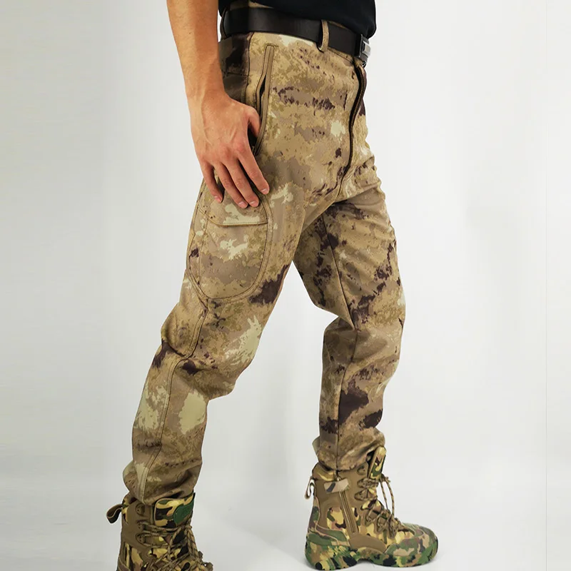 Камуфляжные охотничьи брюки уличные водонепроницаемые ветрозащитные флисовые несколькими карманами софтшелл износостойкие боевые штурмовые тактические брюки