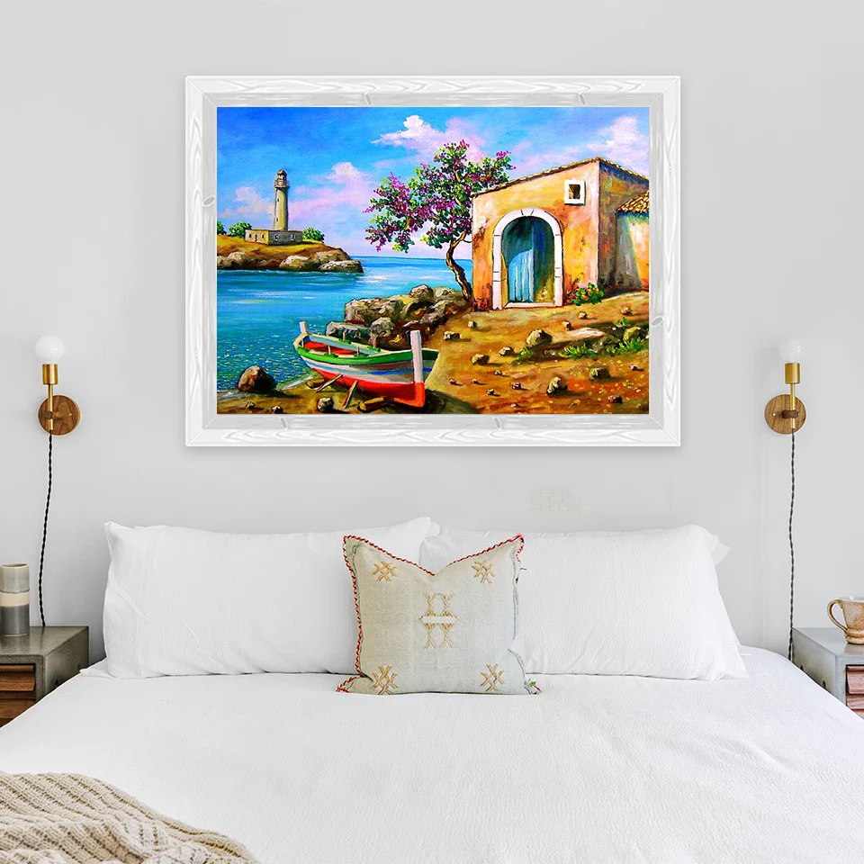 5D DIY Алмазная картина пляжная рыбацкая лодка Алмазная вышивка море вид крестиком полностью квадратная круглая дрель домашний декор искусство подарок