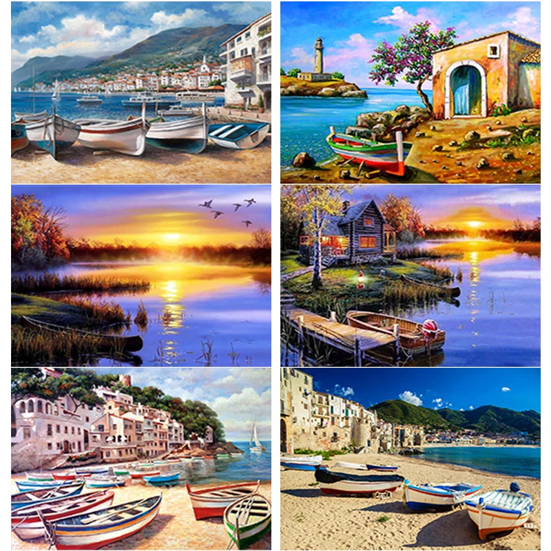 Алмазная живопись 5D сделай сам, картина для пляжа, рыбалки, лодки, искусство, вышивка крестиком, квадратная, круглая, с бусинами, домашний декор, художественный подарок