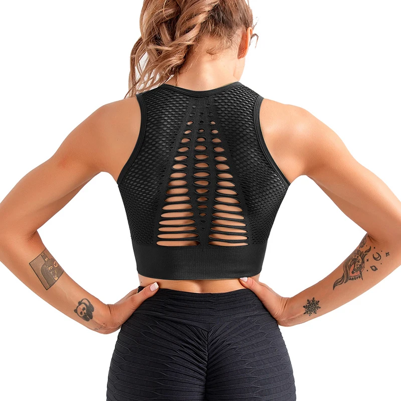 Спортивный бесшовный бюстгальтер, сексуальное ажурное дышащее Спорт...