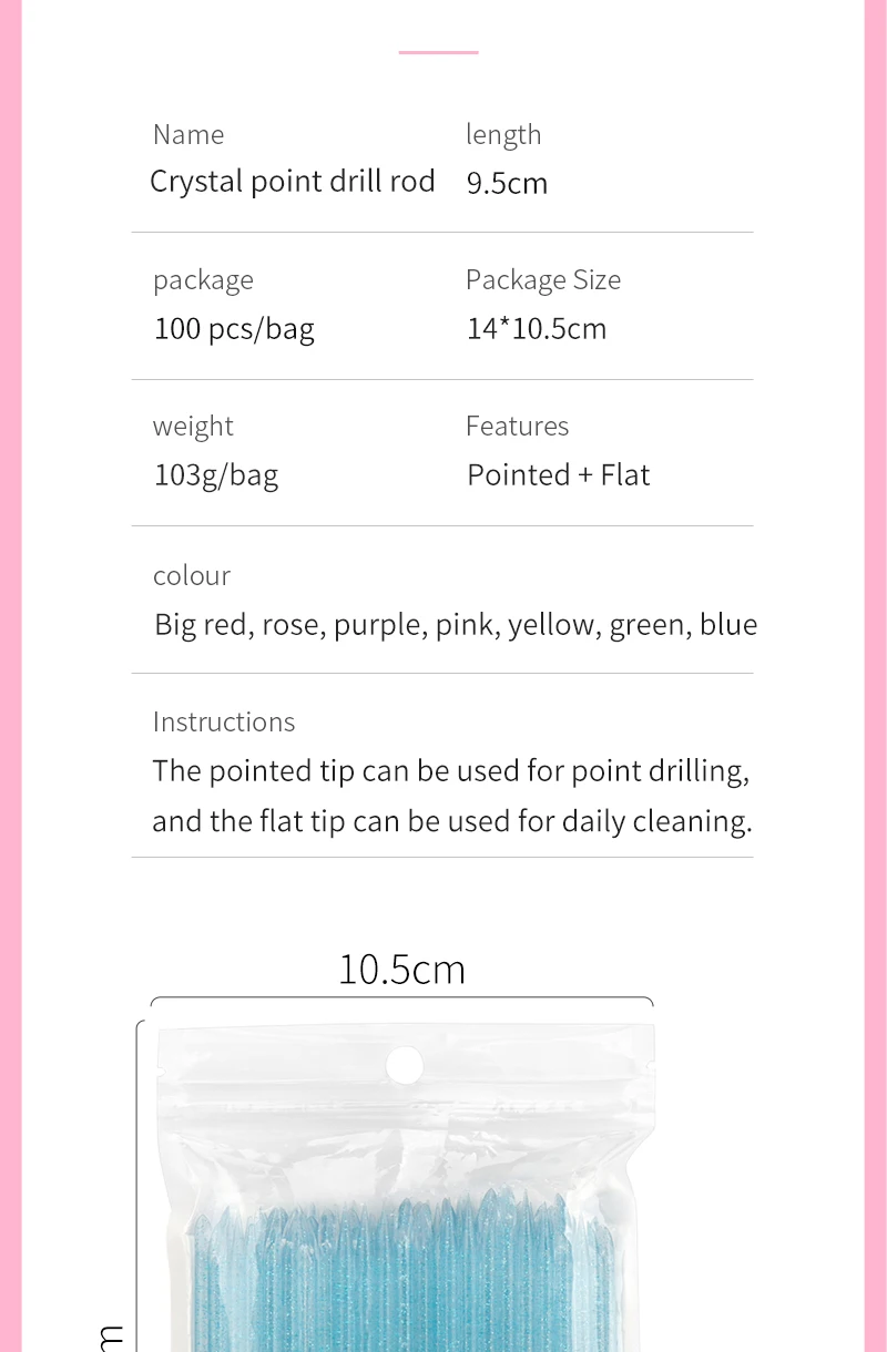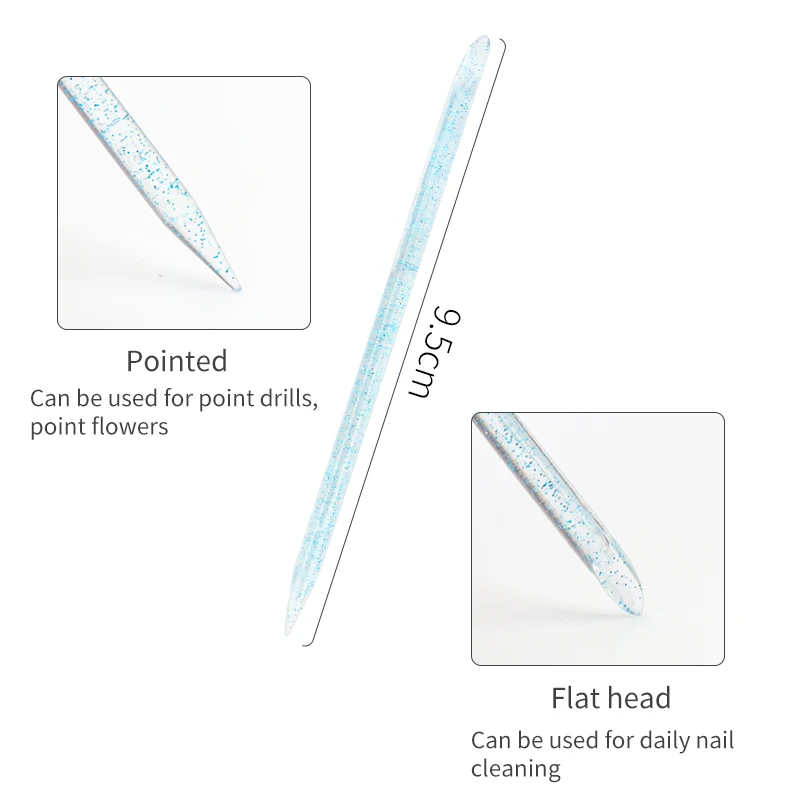 Преимущества: многоразовый/длительный срок службы/Защита окружающей средыОсобенность 1: можно использовать оба концаОсобенность 2: новый дизайн кристаллические палочкиОсобенность 3: безопасно и быстро обрезает излишки кутикулы и подвесных ногтей.