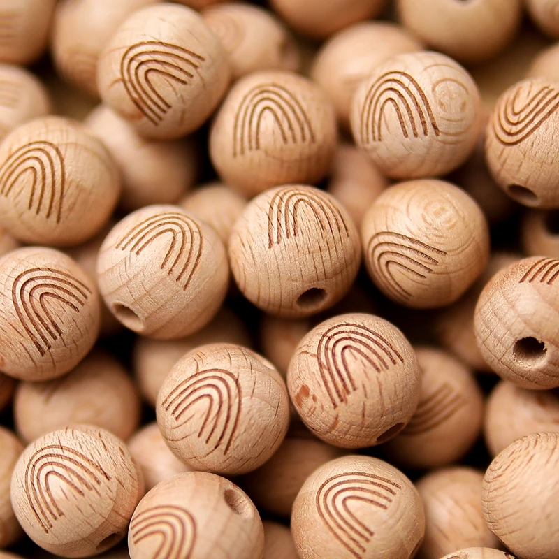 50 шт. 16 мм Буковые бусины деревянные Прорезыватели для новорожденных детские деревянные бусины с принтом самодельные Соски Ожерелье Аксессуары для цепи Товары для малышей