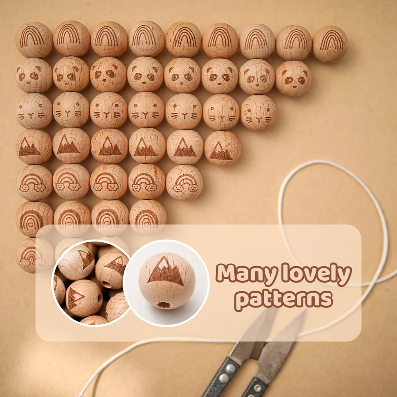 Бусины из бука для прорезывателя новорожденных, деревянные бусины с принтом сделай сам для соски, ожерелья, цепочки, аксессуары, 50 шт., 16 мм