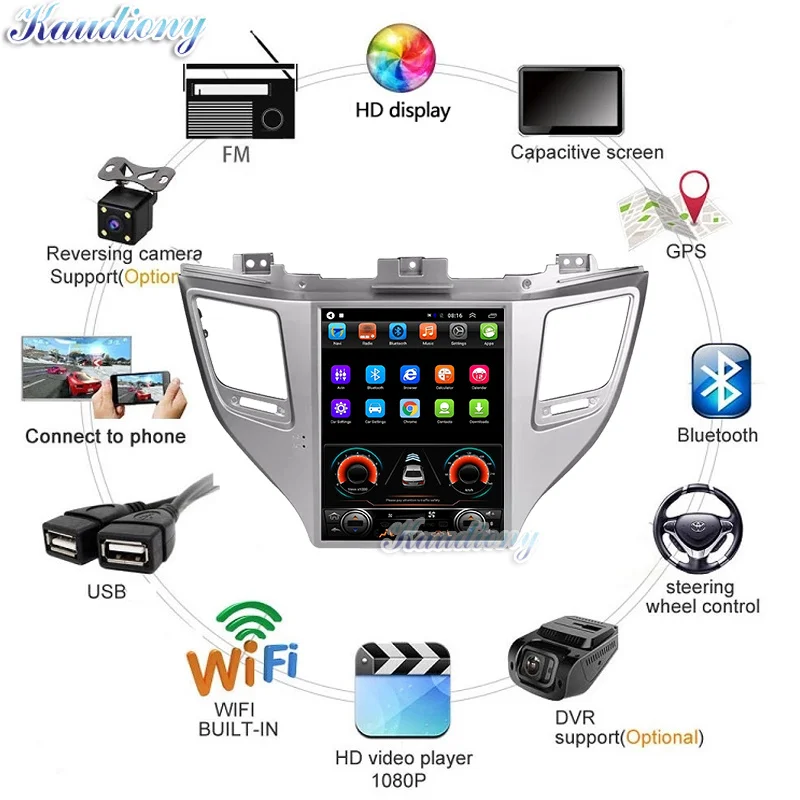 Kadiony 10,4 "Telsa стиль вертикальный экран Android 10,0 автомобильное радио Automotivo головное устройство для Hyundai Tucson автомобильный DVD мультимедийный плеер Авто GPS Навигация стерео 4G 2015-2020 сенсорный экран Bluetooth BT Музыка NO 1 DIN NO 2 DIN
