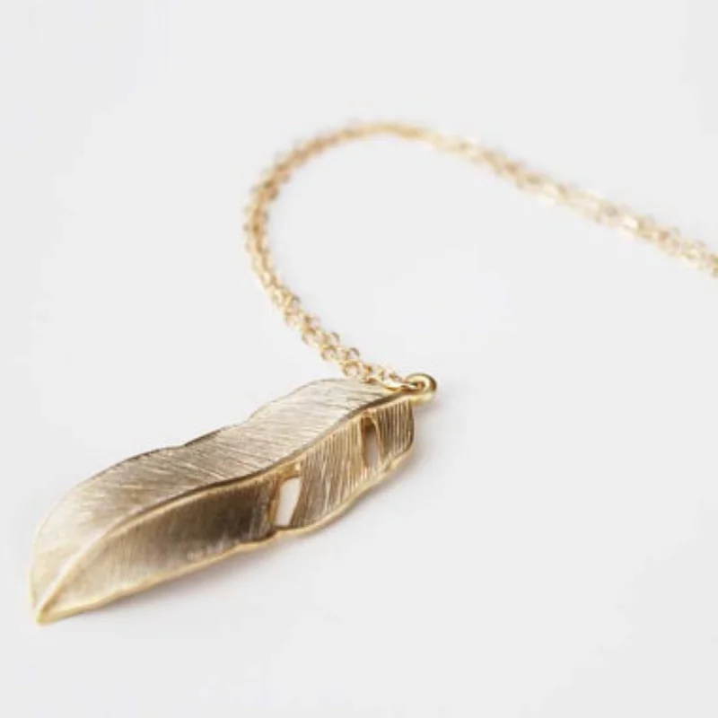 Женское ожерелье с подвеской в виде пера, золотистого цвета