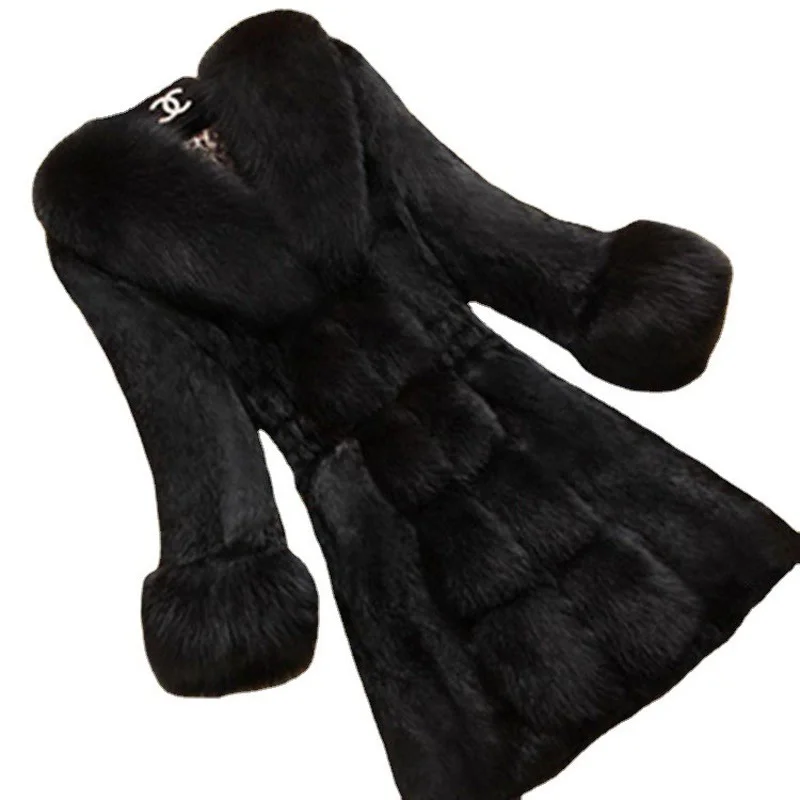 Осенне-зимнее утолщенное пальто из искусственного кроличьего меха, женское платье для матери с воротником из лисьего меха, теплая хлопковая одежда, пальто