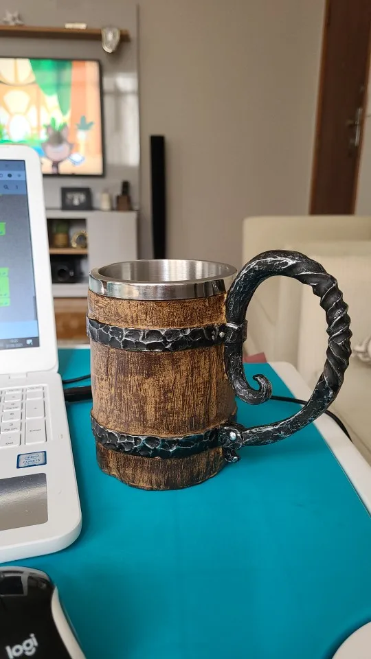 Пивная кружка из нержавеющей стали в стиле смолы, имитация деревянного бочонка, пивная кружка с двойными стенками, металлическая Изолированная кружка для бара, питьевая игра