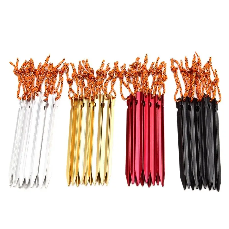 Колышки для палатки Jungle King 18 см, алюминиевые колышки с веревкой, оборудование для кемпинга и пешего туризма, аксессуары для отдыха на открытом воздухе, путешествий, 8 шт.