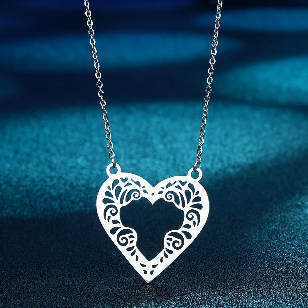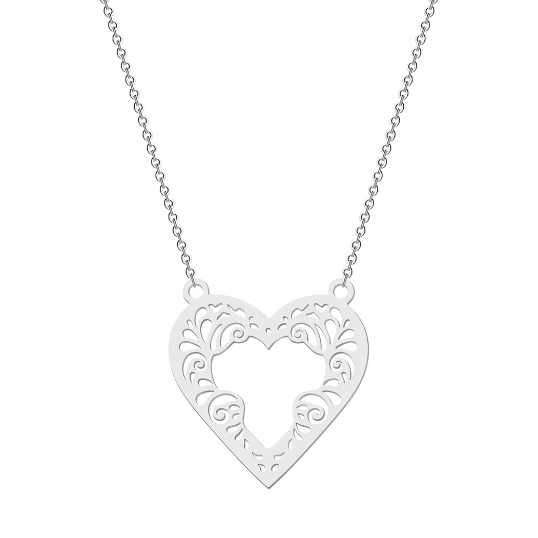 Ожерелье Cxwind в форме сердца из нержавеющей стали с кружевом, Очаровательное ожерелье в стиле бохо с полым сердцем для женщин, Массивное колье, женская бижутерия в подарок