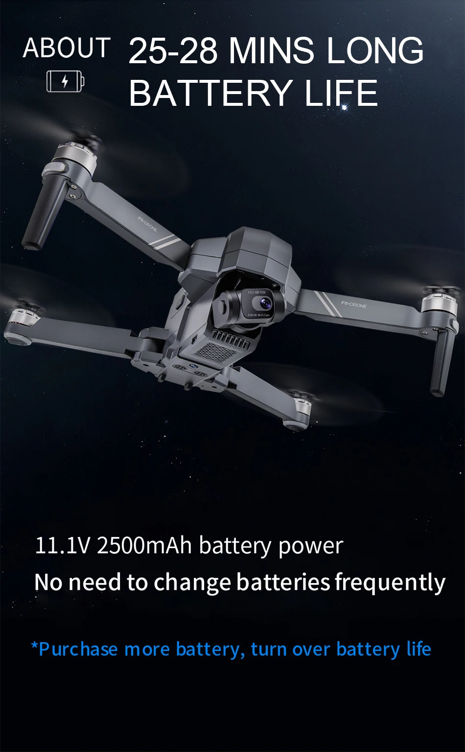 Номер товара: F11S 4K PROЦвет: серыйЧастота: 2,4G (пульт дистанционного управления) и 5G (мобильный телефон)Аккумулятор дрона: 11,1 В 2500 мАчРасстояние управления: 3000 м (открытый и свободный, зависит от окружающей среды и мобильного устройства)Wi-Fi расстояние передачи изображения: 3000 м (открытый и свободный, в зависимости от условий и мобильных устройств)Время полета: около 26-28 минутВремя зарядки: около 5 часовUsb-зарядка: 5 В/3 А (тип c)Вес изделия: 585 гПульт дистанционного управления Управление Батарея: 3,7 V 1500mAhВремя зарядки передатчика: около 2 часовВремя работы передатчика: около 2 часовКамера: 2-оси EIS электронная стабилизация Gimbal 4K видео КамераОбъектив камеры: FOV:100 °Разрешение фото (приложение) : 4K 3840x2160PРазрешение видео (приложение) : 1280x720PРазрешение фото (sd-карта) : 4K 3840x2160PРазрешение видео (sd-карта) : 4K 3840x2160PЧастота кадров: 30 кадров в секундуФормат фото: JPGФормат видео: MP4Механический диапазон и диапазон управления: наклон (X): -35 ° - + 35 °Рулон (Y) : -100 °- + 70 °Регулируемый угол: -80 °- + 0 °Съемка жестов: 1-3 мРаспознавание изображений Следуйте за мной: 3-10 мGPS следуй за мной: 10-100 мSd-карта поддерживает 32G-128G (не входит в комплект)Версия системы мобильного устройства: iOS 9,0 или более поздняя версия/Android 5,0 или более поздней версии