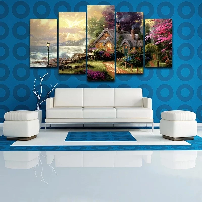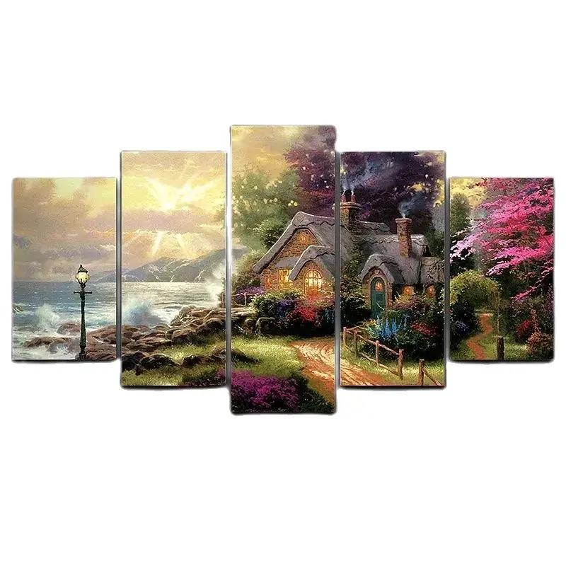 5 панелей Seashore коттедж классическая картина маслом Hd Печать на холсте настенное искусство Модульная картина Современная рамка для декора гостиной