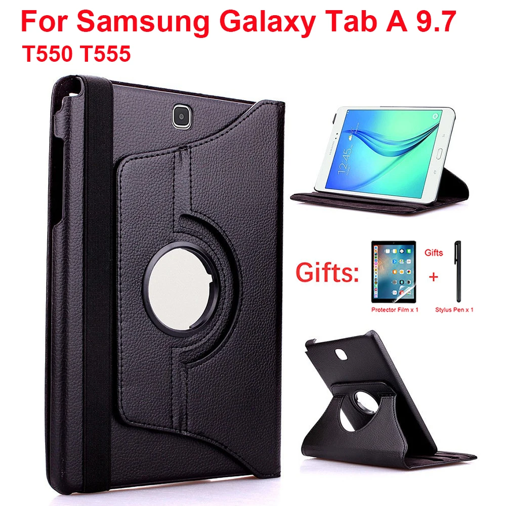 Чехол с вращением на 360 градусов для планшета Samsung Galaxy Tab A 9,7 2015 T555 SM-T550 дюйма, кожаный чехол с подставкой, чехолХарактеристики продукта:* 100% новые чехлы.* Прочный и моющийся.* Изготовлен из высококачественного материала.* Защитите от пыли, царапин и ударов* Модный дизайн, легко надеть и легко снятьСовместимость: Для Samsung Galaxy Tab A 9,7 дюйма T550/T555 (2015)Посылка входит:1 х защитный чехол1 стилус1 х мягкая пленка для экрана
