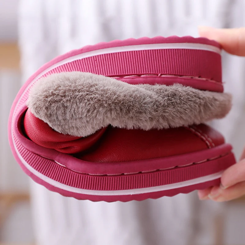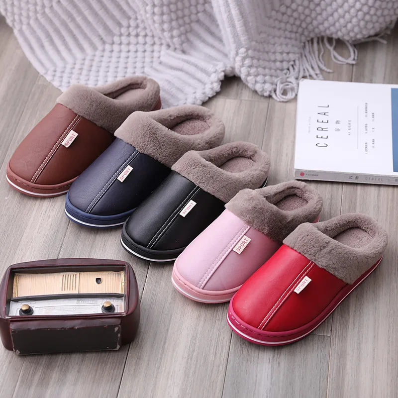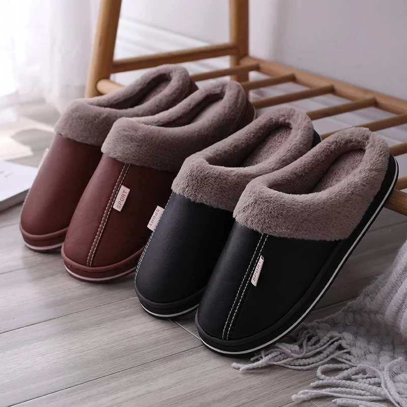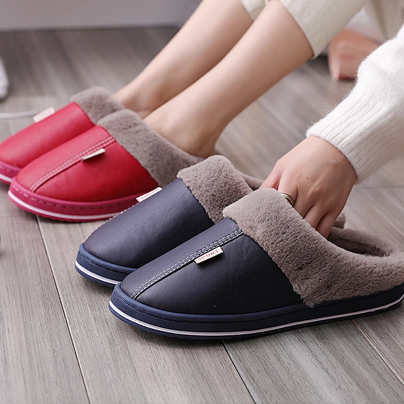 Водонепроницаемые тапочки из ПУ кожи для мужчин и женщин, зимние пл...