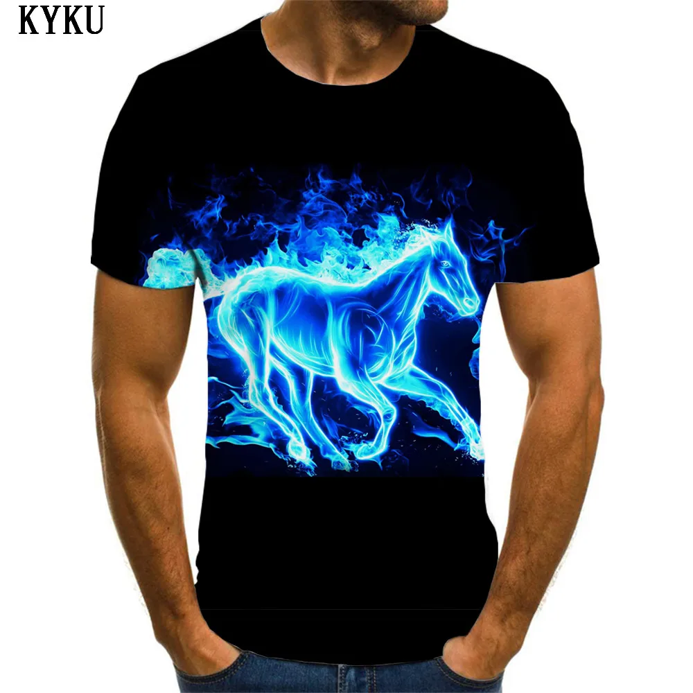 Футболка мужская Harajuku, с принтом лошади, с 3d изображением живо...