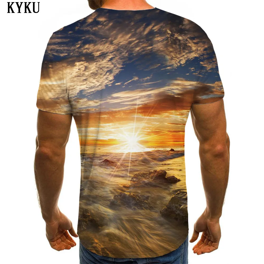 Футболка мужская с 3D-принтом пейзажа, повседневная приталенная тен...