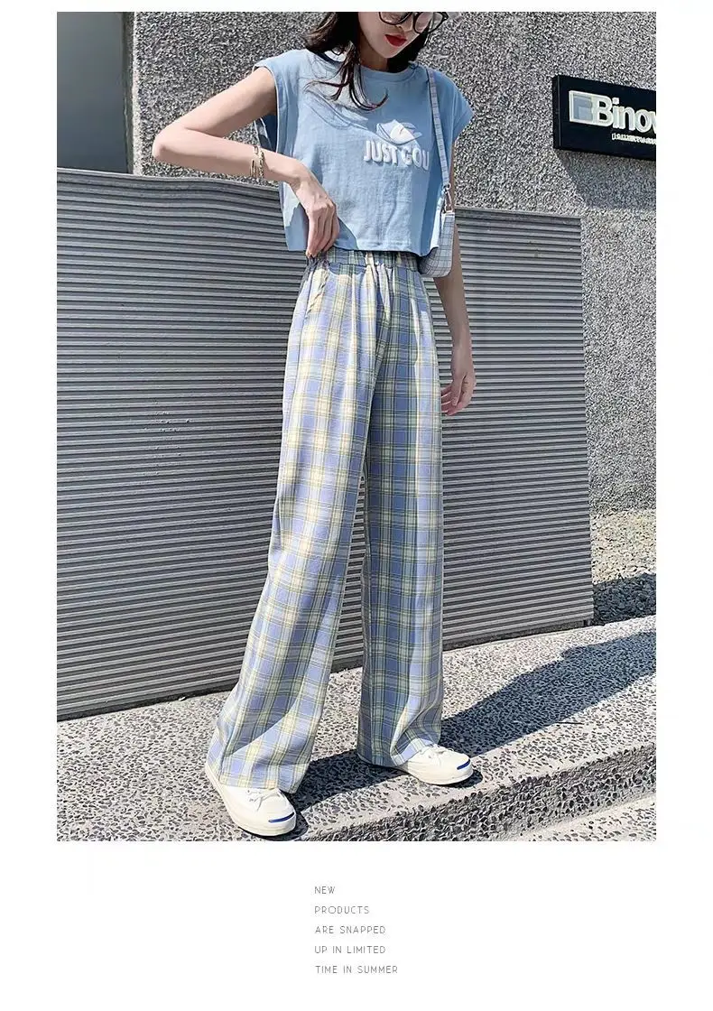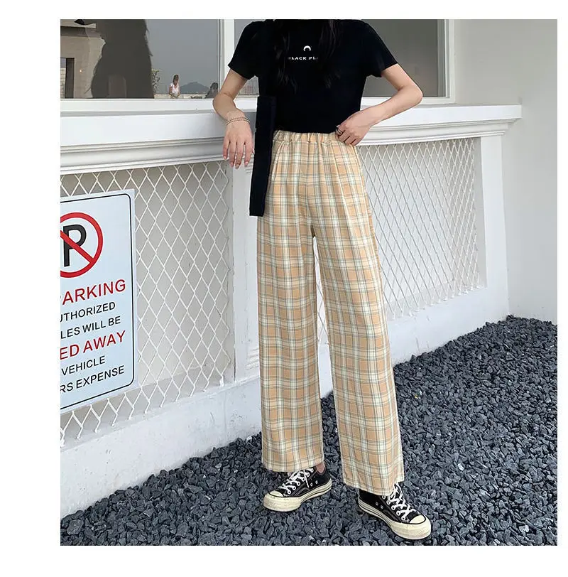 Женские брюки в клетку, с широкими штанинами и высокой талией