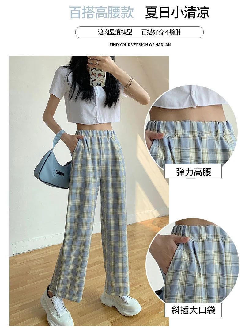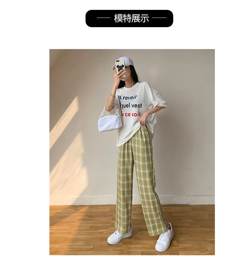 Размера плюс, новые корейские Стиль штаны в клетку; Сезон весна; Мо...