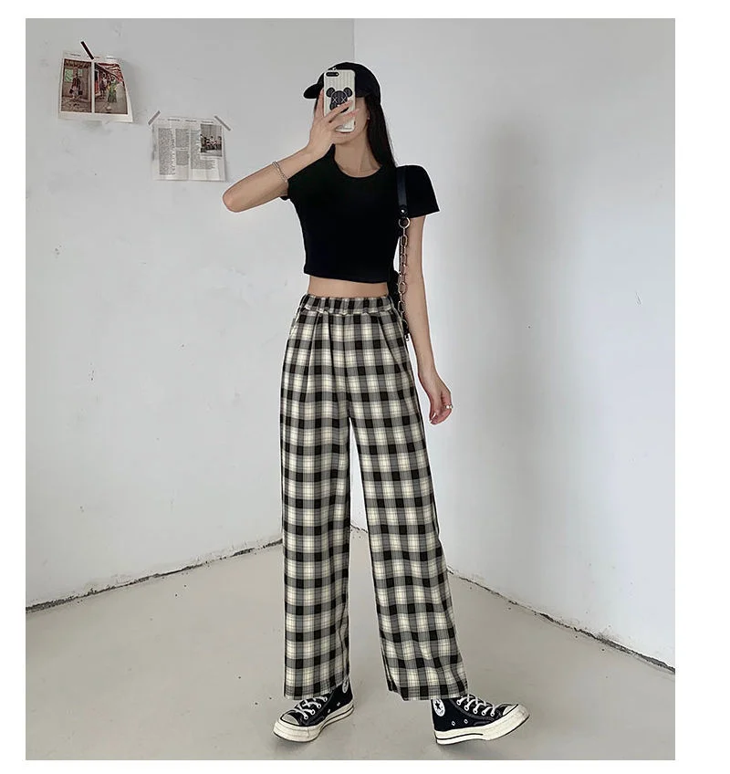 Женские осенние клетчатые брюки, крутые японские брюки, женские мод...