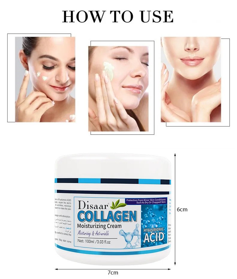 Крем, который извлекается из 100% чистого коллагена. Помогает коже поддерживать высокую влажность. Ваша кожа будет выглядеть эластичной, мягкой и молодой. Коллаген проникает в кожу и восполняет в ней отсутствие аминокислот, восстанавливает эластичность кожи, уменьшает глубину морщин.Снижает уровень старения разрушений коллагена. При ежедневном использовании крема кожа становится ухоженной и наполненной энергией.