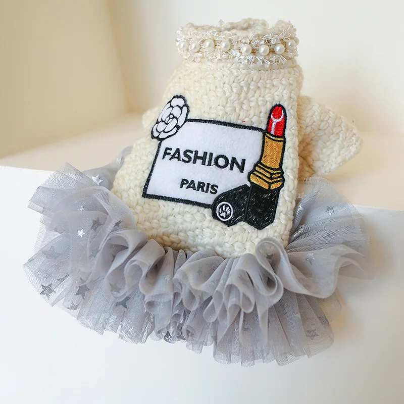 Вышитая губная помада, костюмы для домашних животных, для маленьких собак, с жемчужинами, шерстяная, в стиле знаменитостей, кошек, Зимняя Теплая юбка-пачка, XS XL, товары для магазина