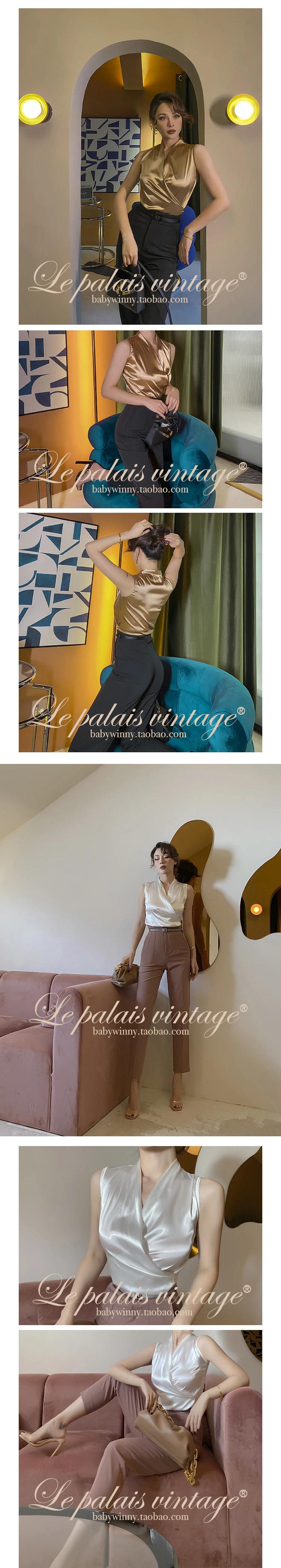 Le Palais винтажный 2021 Летний новый оригинальный модный элегантный Атласный топ на бретелях для женщин сексуальный v-образный вырез без рукавов укороченный топ для офисной леди
