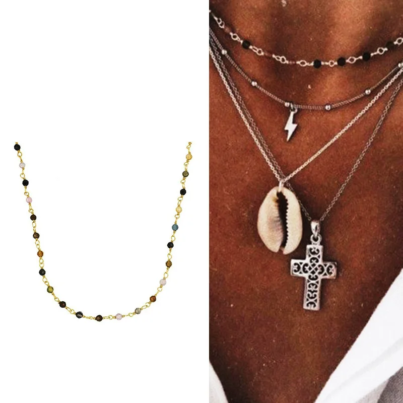 цепочка на шею женская Чокер цепь на шею Бижутерия Подвеска Ожерель Винтажное ожерелье для мужчин и женщин, ожерелье из нержавеющей стали с разноцветными бусинами, богемный чокер, классическое украшение на шею, 2021