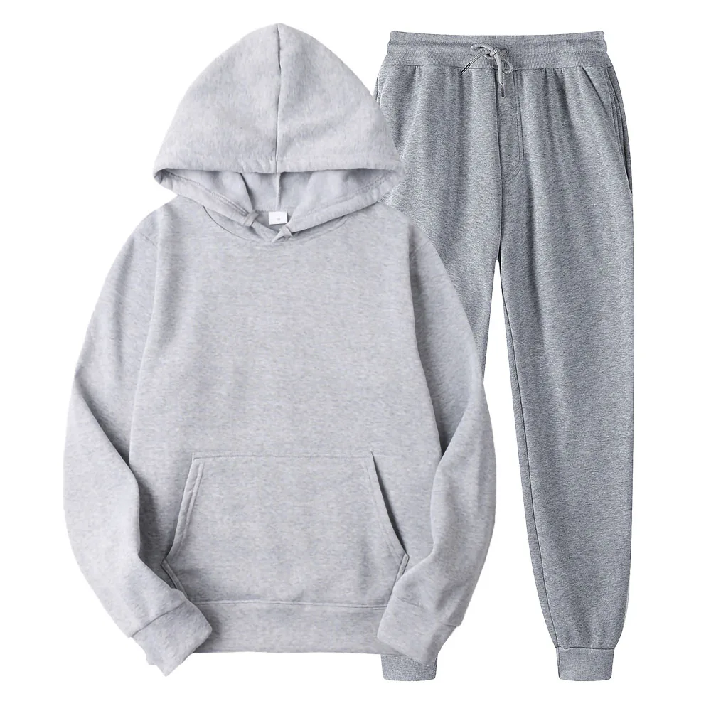 Мужской модный однотонный костюм с капюшоном, свитер + спортивные штаны, флисовый комплект из 2 предметов, 2021