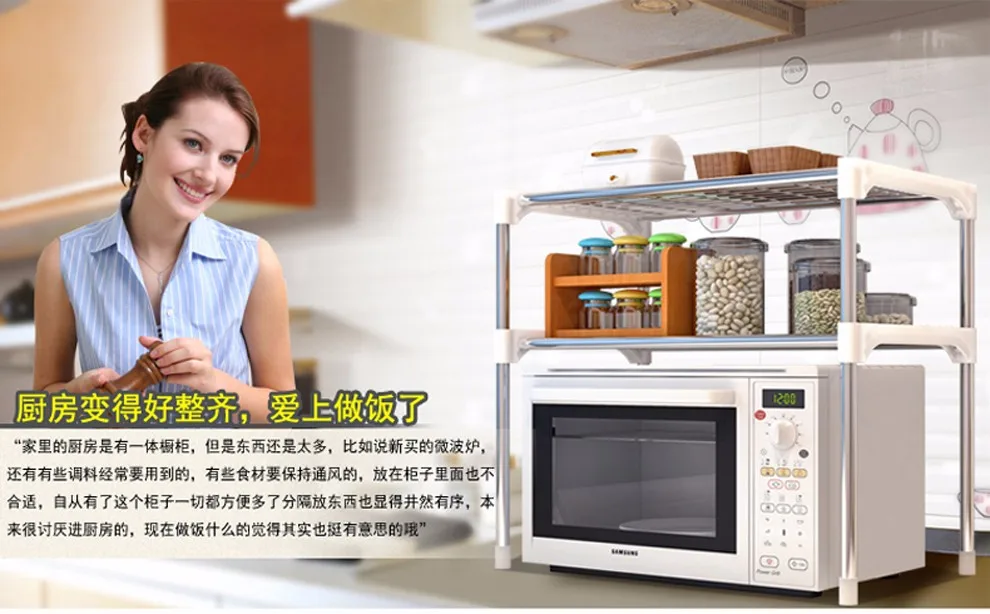 Двухуровневая подставка для микроволновой печи, полка-органайзер дл...