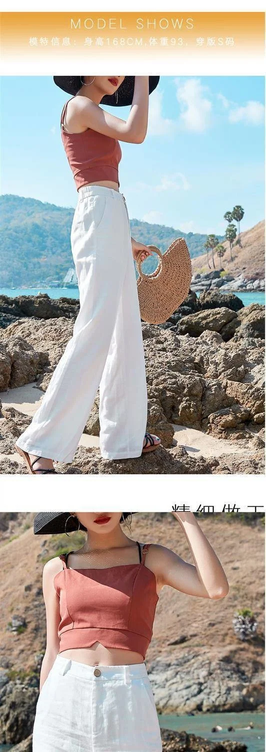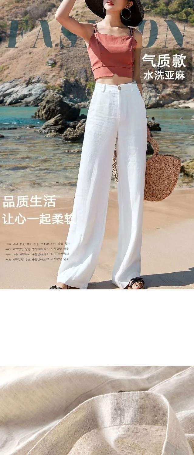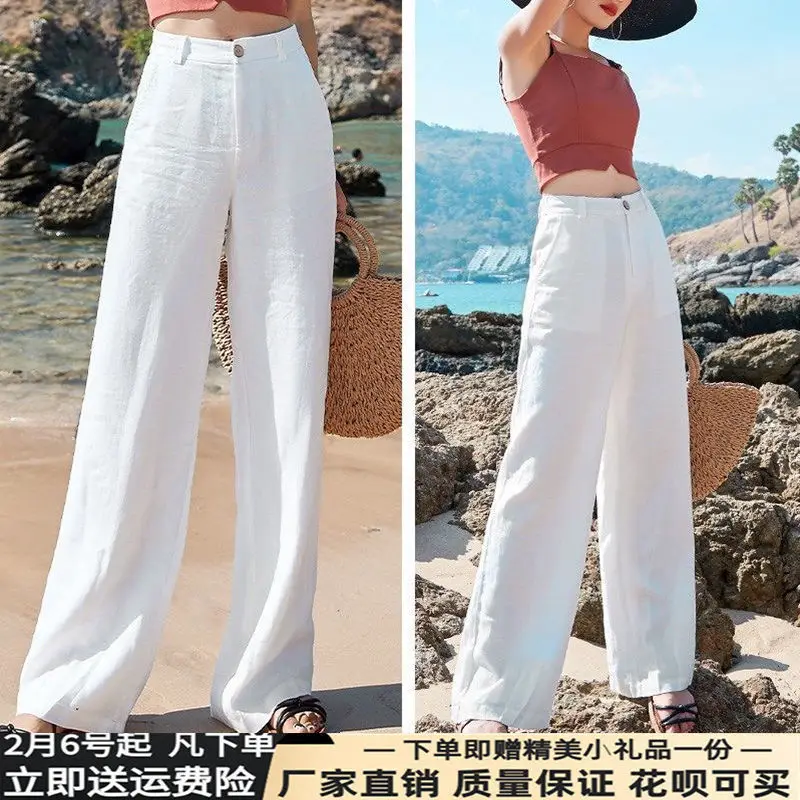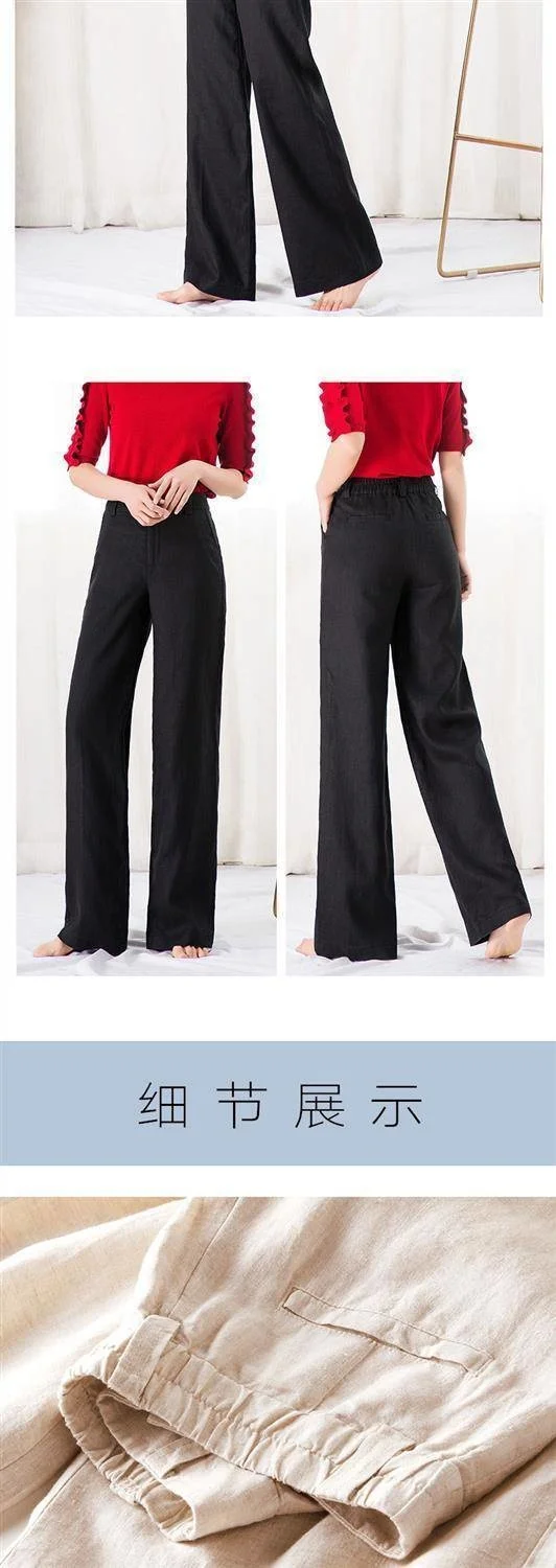 Женские брюки, женская одежда, льняные свободные льняные широкие эластичные прямые брюки с высокой талией