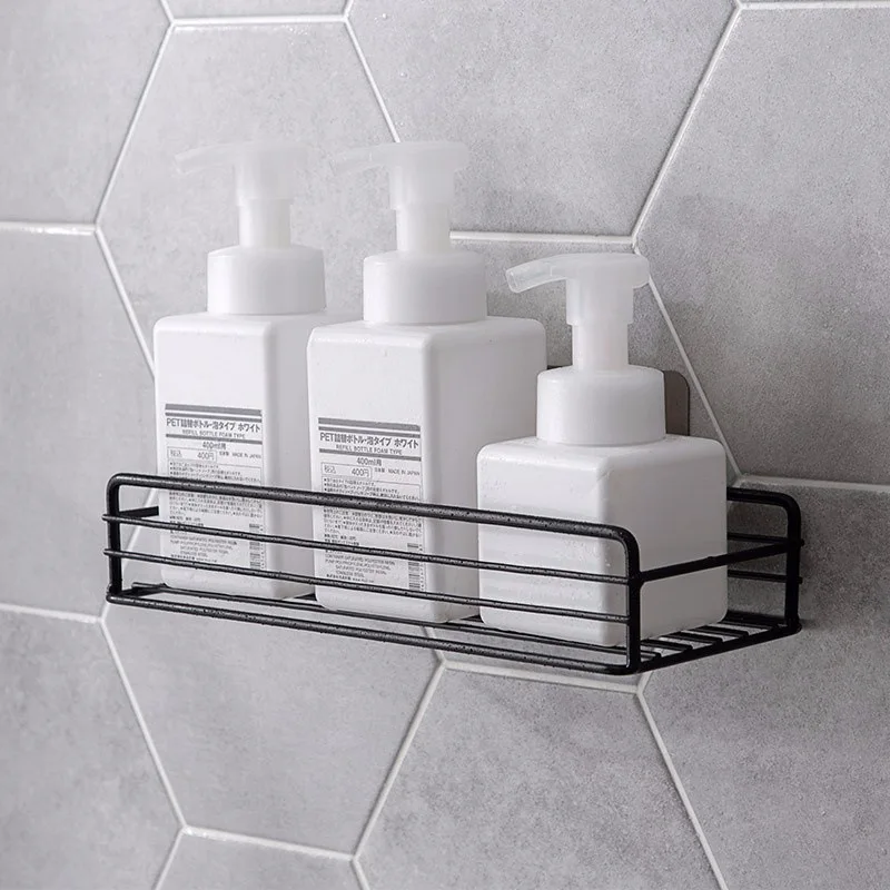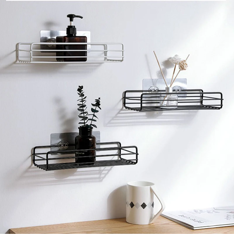 Полка-органайзер для ванной комнаты, полки для душа, черная, белая железная настенная полка, полка для хранения без отверстий, органайзер для кухни, спальни