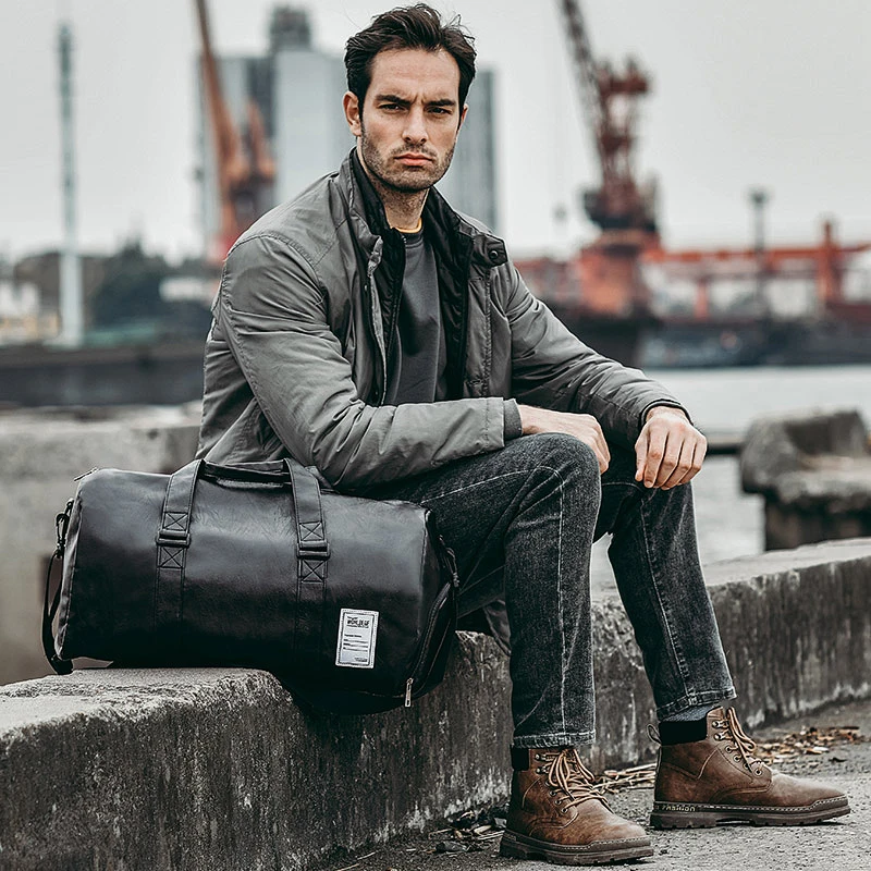 Вместительная кожаная дорожная сумка, Водонепроницаемая спортивная ...