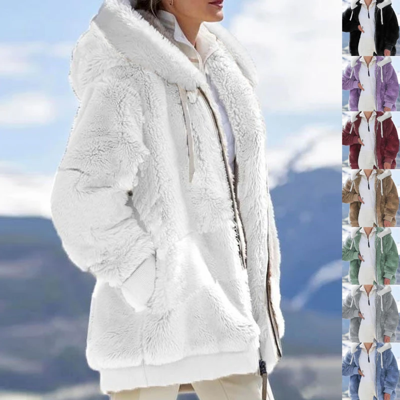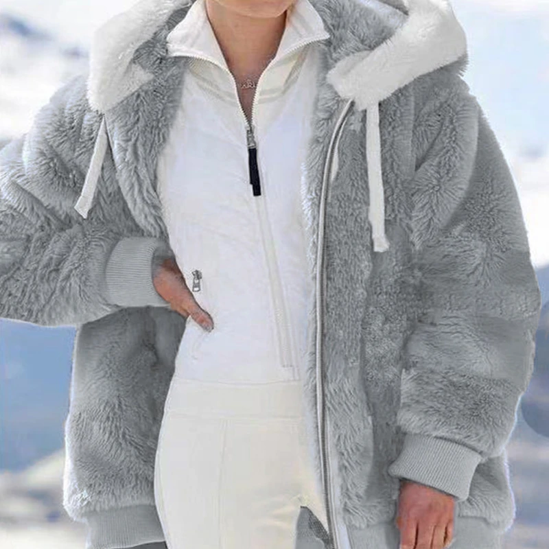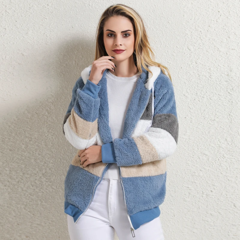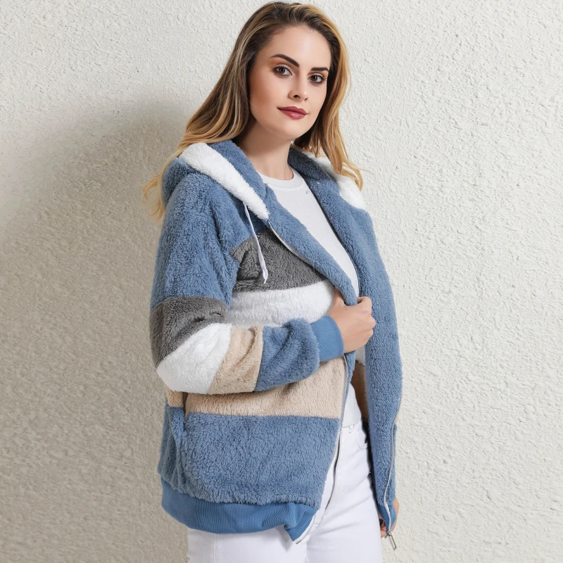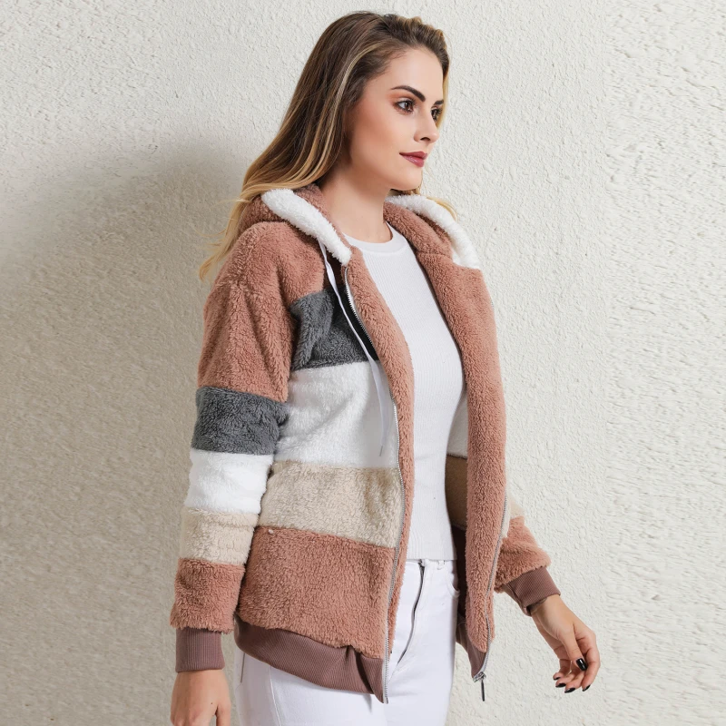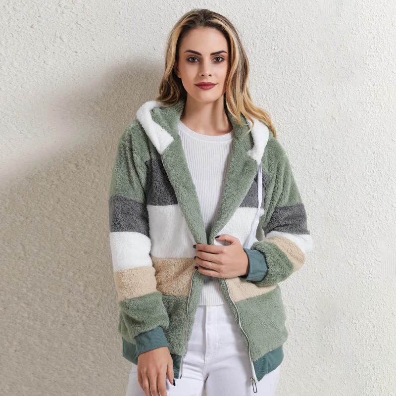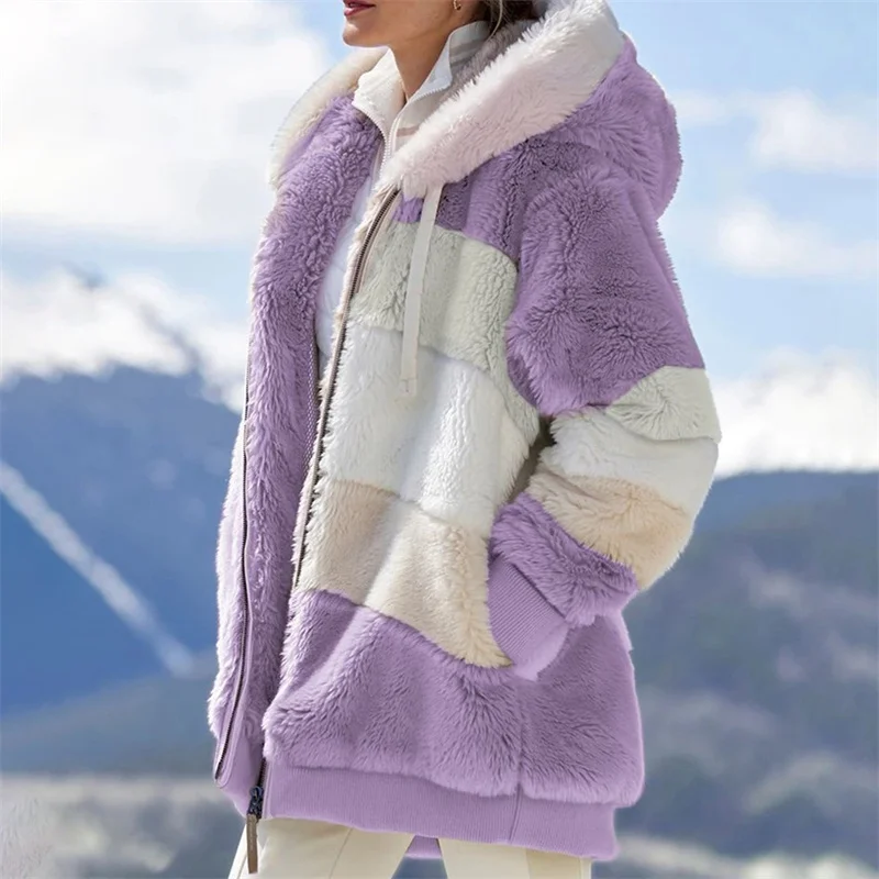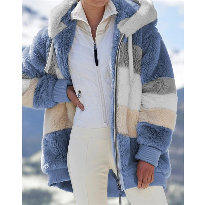 Зимняя женская куртка, новая теплая плюшевая Лоскутная куртка на молнии, с карманами, с капюшоном, клетчатая, с искусственным мехом, в стиле ретро, с длинным рукавом, верхняя одежда
