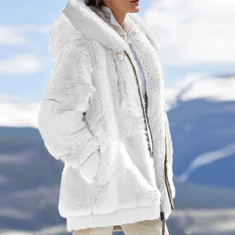 Куртка женская зимняя, с капюшоном и длинным рукавом, из искусственного меха