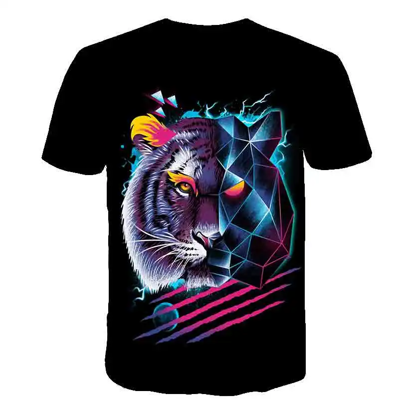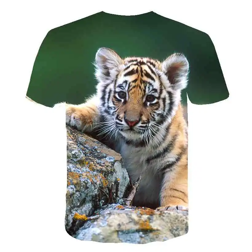 Футболка детская с 3D-принтом тигра, льва и коротким рукавом