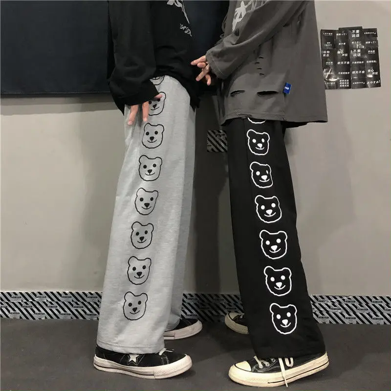 Спортивные брюки с принтом медведя для мужчин и женщин, новинка 202...