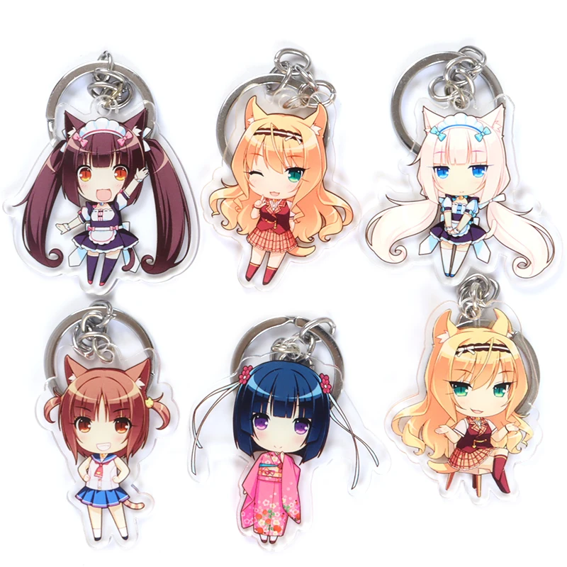 Модный акриловый брелок для ключей в стиле аниме некопара, брелок для ключей в виде японских мультяшных фигурок, двусторонний автомобильный брелок, унисекс, ювелирные аксессуары, подарки