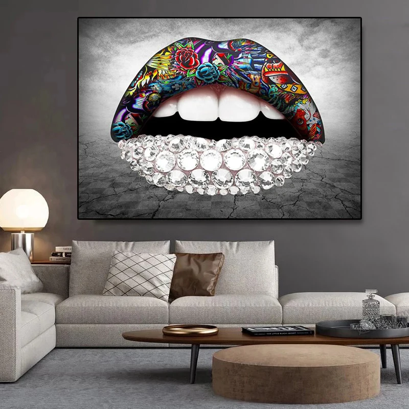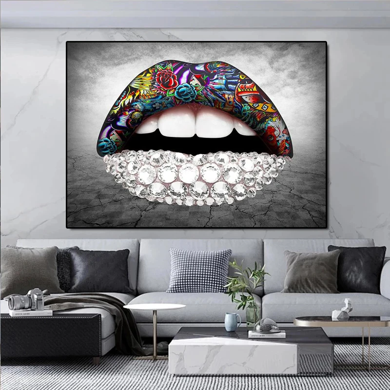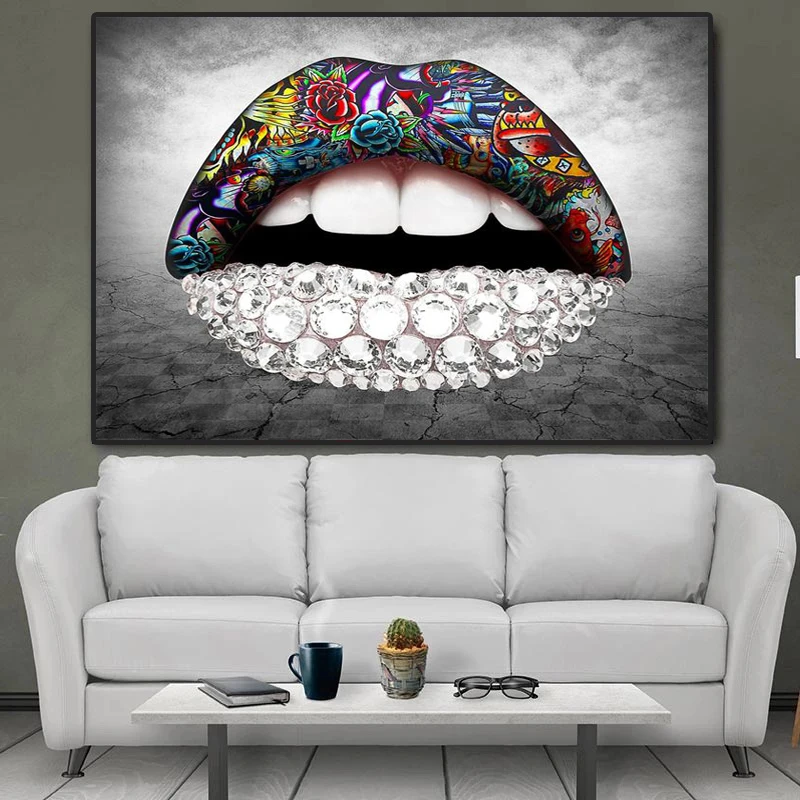 Модная художественная губная помада на холсте, картина, граффити, настенные плакаты и принты, сексуальные губы, декоративная картина, декор для гостиной