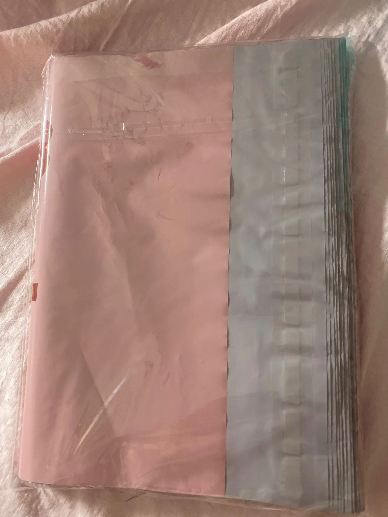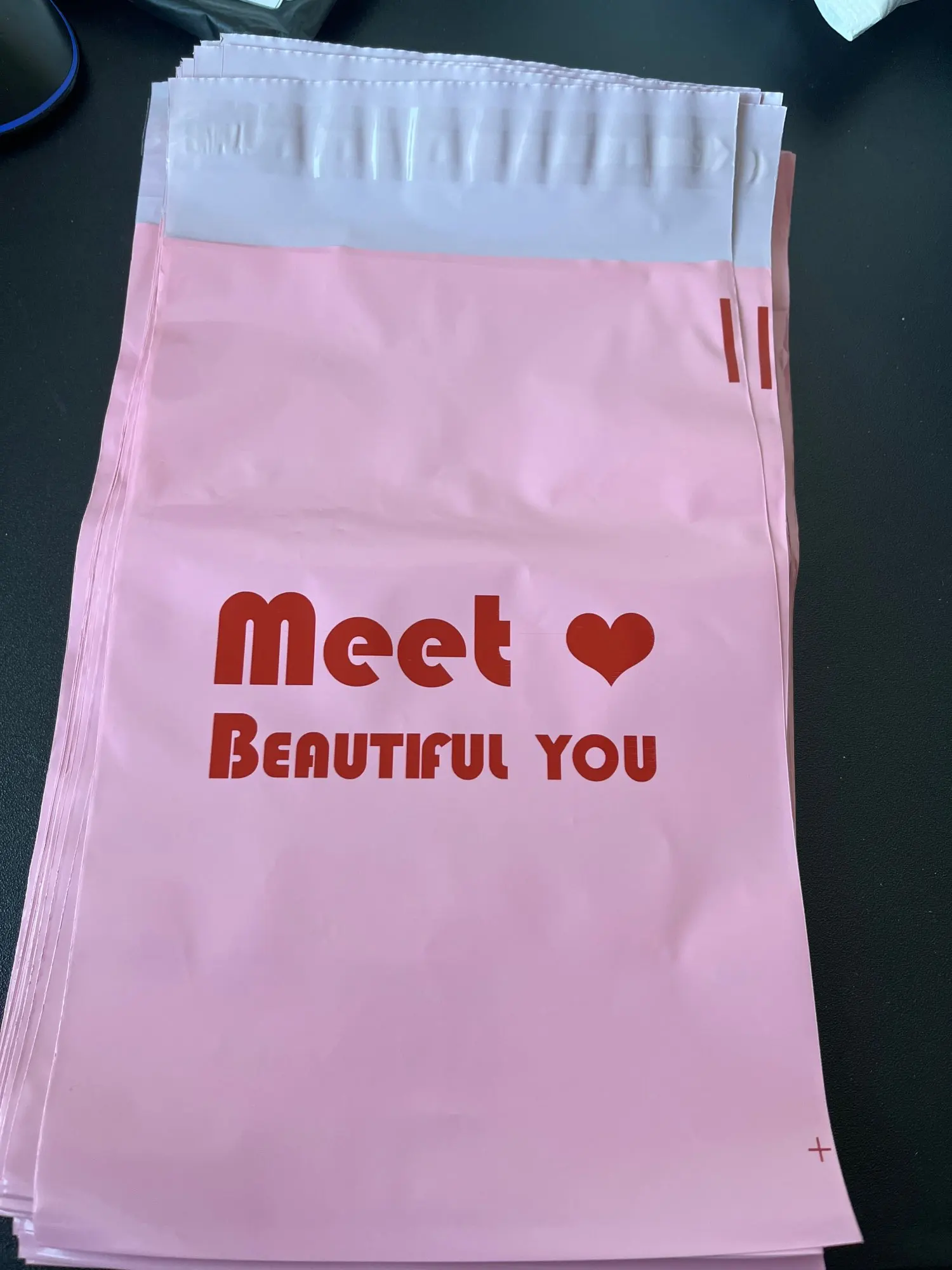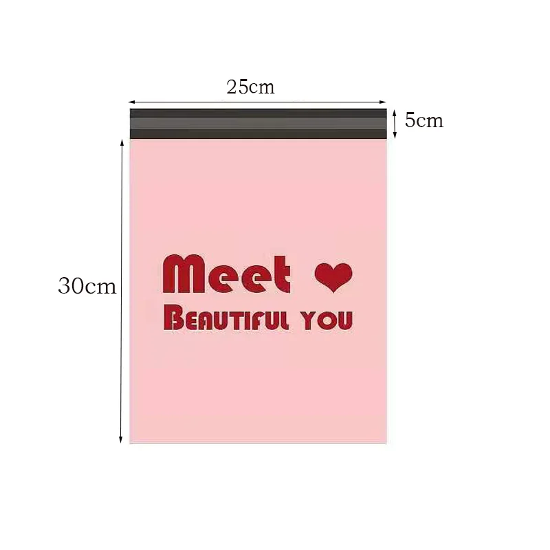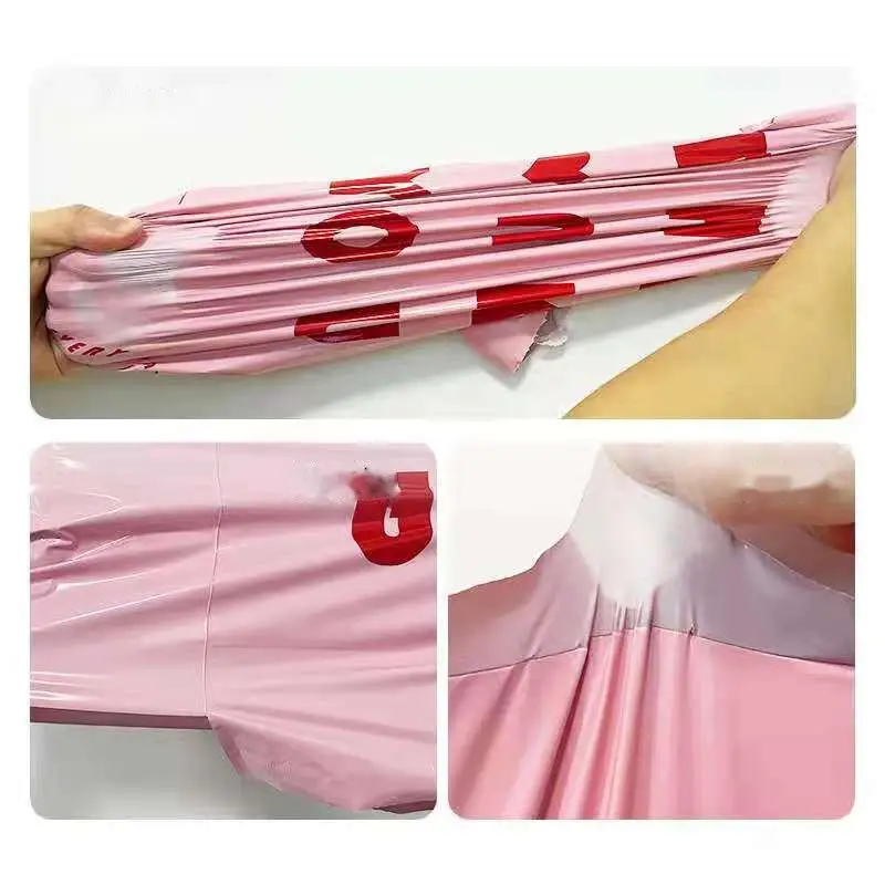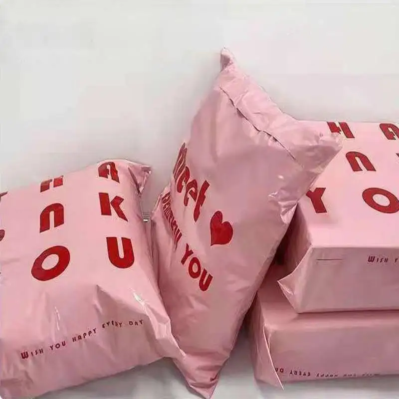 50 шт.лот непрозрачные полиэтиленовые пластиковые пакеты для хранения Экспресс-конвертов, розовые пакеты с красным логотипом, пакеты для почтовых отправлений, самоклеящиеся курьерские пакеты