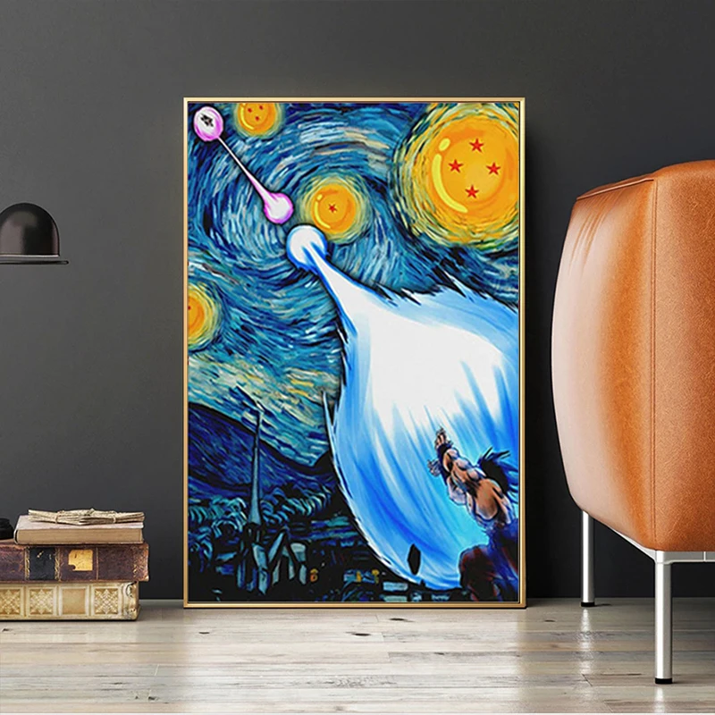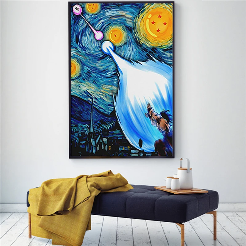Картина Гоку из мф Драконий жемчуг, настенный постер с изображением звездного неба, Картина на холсте для украшения дома, гостиной
