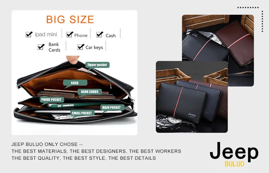 Мужской многофункциональный клатч JEEP BULUO, Большой Вместительный...